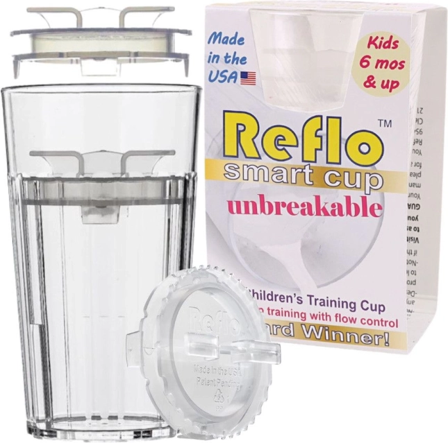 Insegnate a vostro figlio a bere come i grandi – senza paura di rotture. Il bicchiere da allenamento Reflo ha un inserto studiato che regola il flusso, così il liquido esce gradualmente e il bambino impara facilmente a sorseggiare correttamente anche senza beccucci. Il design trasparente consente di controllare il contenuto e la forma zigrinata facilita la presa anche alle mani piccole.