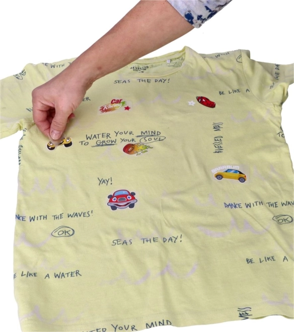 È sufficiente posizionare i motivi, coprirli e stirarli. Personalizzazione rapida di magliette, felpe e borse senza tecniche speciali.