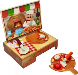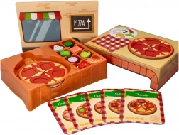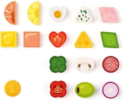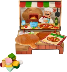 Include diversi ingredienti colorati e rimovibili, come funghi, peperoni e formaggio, che permettono ai bambini di creare pizze uniche.