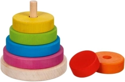La torre impilabile arcobaleno in legno è un giocattolo ideale per i piccoli bambini, che combina divertimento e apprendimento. Gli anelli di legno vengono infilati su un’asta dalla dimensione più grande alla più piccola, aiutando non solo a sviluppare la motricità fine, ma anche la pazienza e la risoluzione di compiti più complessi.