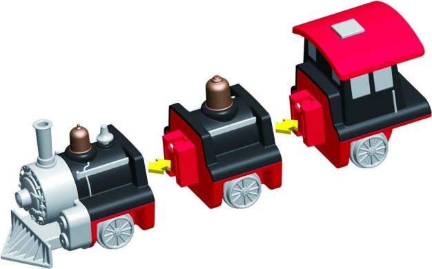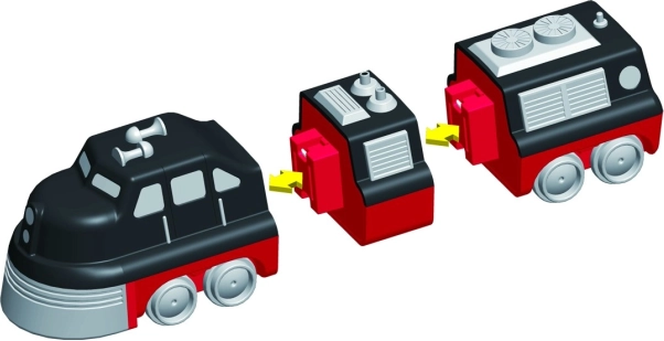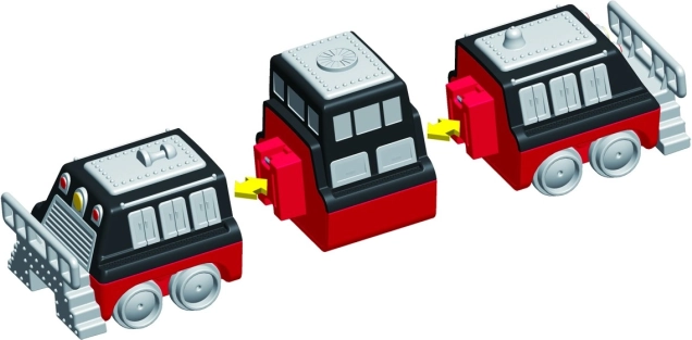 Il meccanismo brevettato unisce stabilità e facile separazione. I bambini possono cambiare i convogli in modo sicuro e intuitivo, allenando la manualità.