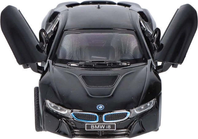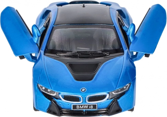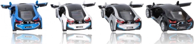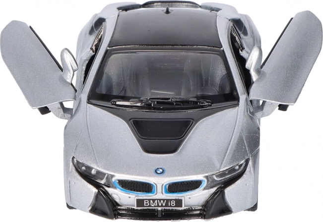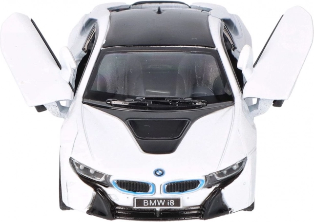 La realizzazione dettagliata del modello in metallo BMW i8 include elementi di design accurati, come la caratteristica griglia BMW e la forma dei fari.