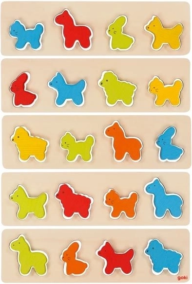 Divertiti con il gioco di smistamento, dove i bambini possono sviluppare la motricitine e imparare i colori grazie a tessere di gioco in legno e animali variopinti.