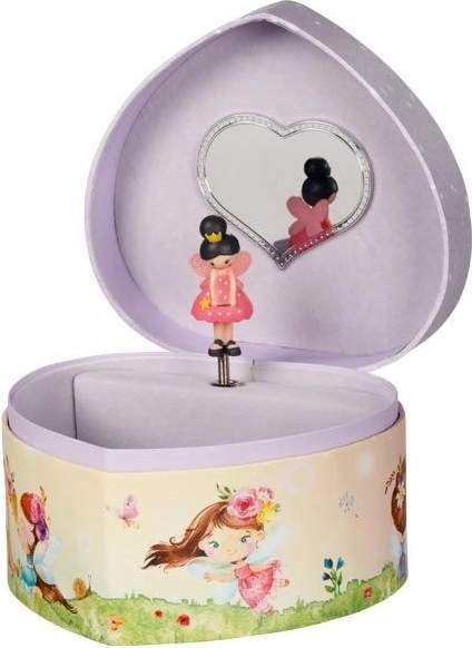 Questo grazioso portagioie in stile carillon unisce un design incantato a uno spazio contenitivo pratico. Aprendo il coperchio parte la celebre melodia Il lago dei cigni e la piccola fata inizia a ruotare davanti allo specchietto a cuore. La scatola è un regalo perfetto per i bambini che amano i gioielli e i motivi fiabeschi.