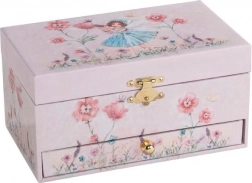 Elegante carillon portagioie con motivo di papaveri, pensato per piccole vanitose e amanti delle decorazioni. All'apertura risuona la melodia dal balletto Il lago dei cigni e la ballerina inizia a danzare davanti allo specchio. Pratici scomparti e cassetto facilitano la sistemazione ordinata dei piccoli tesori.