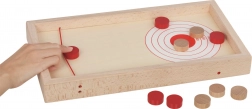 Questo gioco da tavolo in legno bifacciale offre due esperienze di gioco in un’unica scatola. In modalità Super Puck due giocatori cercano di sparare il più velocemente possibile i propri dischi attraverso l’apertura verso il lato dell’avversario usando elastici. Gira la tavola e ottieni un gioco più tranquillo ma avvincente, basato su precisione e raccolta punti colpendo i bersagli.