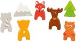 Puzzle in legno colorato per bambini con tema di animali selvatici, che supporta lo sviluppo della coordinazione occhio-mano e del pensiero logico.