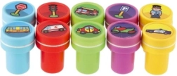 Set divertente di timbri per bambini con motivi di auto per piccoli creativi. La confezione include 10 timbri autoinchiostranti in plastica, ideali per creare, colorare e comporre storie. Facili da usare senza bisogno di un tampone separato e adatti dai 3 anni.