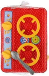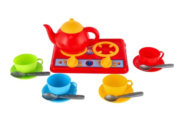 Questo set colorato per piccoli chef offre tutto il necessario per cucinare e servire divertendosi. Il compatto fornello in plastica con manopole è abbinato a un bollitore rosso e a quattro tazzine con piattino e cucchiaini: ideale per i tè pomeridiani dei bambini.
