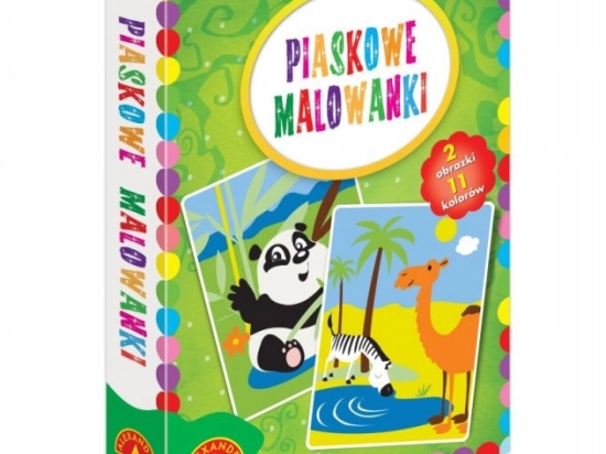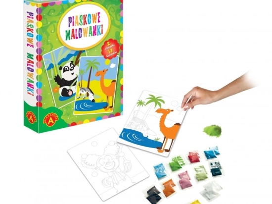 Un amato gioco artistico per bambini con pittura con la sabbia, in cui si scoprono gradualmente i singoli elementi pretagliati dell’immagine per rivelare la superficie adesiva. Gli elementi esposti vengono cosparsi di sabbia, sia nel colore del modello sia secondo la propria fantasia, creando così una bellissima illustrazione.