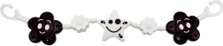 La barra sospesa bianco‑nera con fiori e stellina cattura l’attenzione del neonato e lo intrattiene durante le passeggiate. Facile da fissare con ganci al passeggino o alla culla.