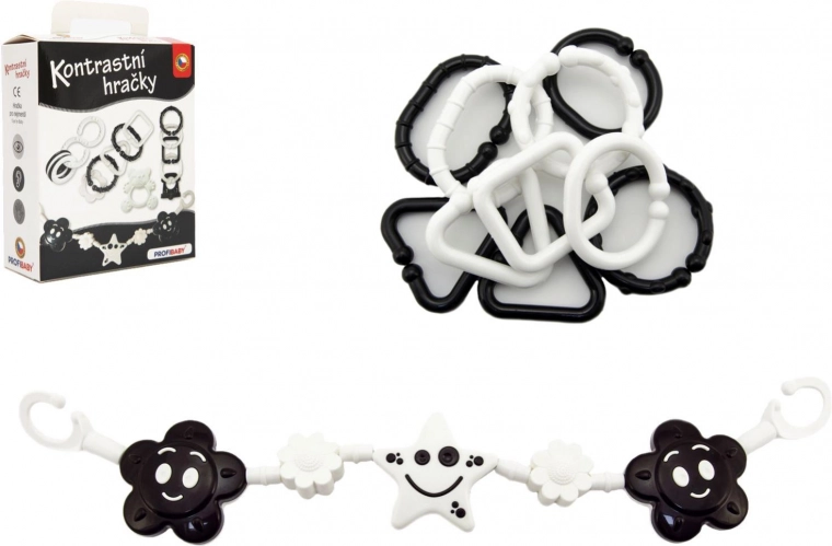 Questo set a contrasto in bianco e nero è progettato per i più piccoli che ancora non distinguono i colori. I motivi ad alto contrasto attirano naturalmente l’attenzione e favoriscono la stimolazione visiva e la concentrazione. Grazie alle forme studiate, i giochi sono facili da afferrare con la manina e aiutano ad allenare il riflesso di presa e la coordinazione mano‑occhio.