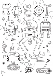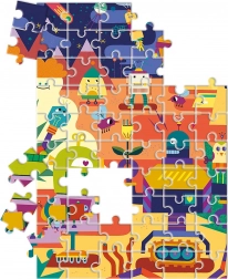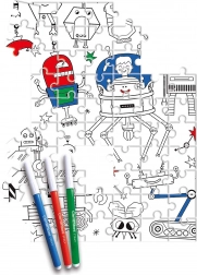 Un lato è un classico puzzle con il tema dei robot, l'altro è pronto da colorare: una combinazione ideale per un gioco creativo.