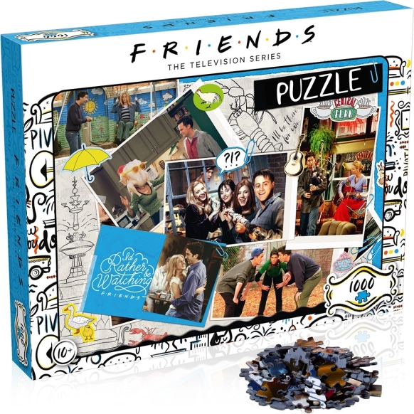 Scopri il divertimento con il puzzle dal design stiloso FRIENDS Scrapbook, che unisce la nostalgia dei fan a una lavorazione di qualità. L'immagine ispirata allo scrapbook della serie farà felice ogni amante dei cult Friends e offrirà una piacevole sfida per le serate libere.