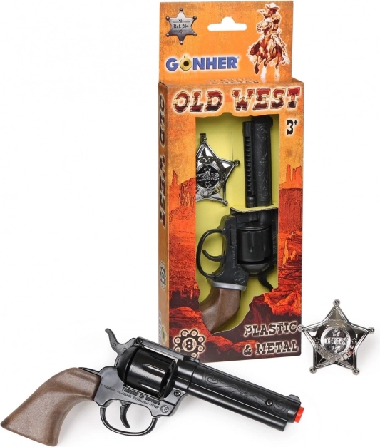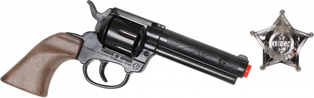 Regala ai piccoli coraggiosi un elegante accessorio per i giochi del Selvaggio West. Questa rivoltella da cowboy per bambini a 8 colpi è accompagnata da un distintivo da sceriffo, così i bambini possono divertirsi in modo realistico e sicuro nei panni dei tutori della legge.