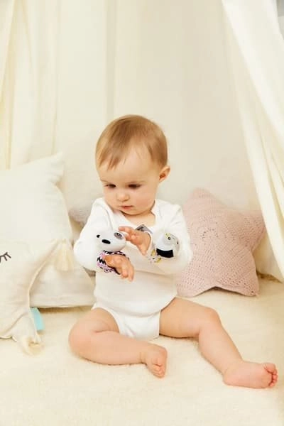 - Supporto alla motricità fine: le testoline in peluche degli animaletti invitano ad afferrare e schiacciare.