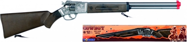 Questo fucile cowboy in metallo per 12 colpi con tamburo è ideale per giochi a tema, costumi e mostre da collezione. La robusta costruzione metallica e la cura costruttiva di Gonher conferiscono al giocattolo un aspetto autentico e una lunga durata.