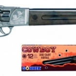 L'autentico fucile da cowboy del marchio Gonher offre a bambini e collezionisti un mix di divertimento e nostalgia. La struttura in metallo, il meccanismo a tamburo e la capacità di 12 colpi garantiscono un'esperienza di gioco realistica.