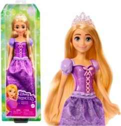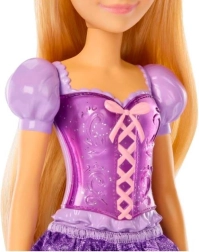 La bambola RAPUNZEL, con l'iconico abito viola, brilla in ogni ballo reale. Il corpetto lucente e la gonna rimovibile con motivo unico esaltano il suo stile da principessa, mentre la tiara e le scarpette completano il look. Grazie alle articolazioni assume facilmente diverse pose ed è pronta per ogni avventura.