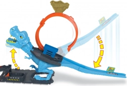 - Pista con loop, figura del T‑Rex, lanciatore, 1 macchinina Hot Wheels 1:64