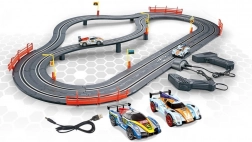 Nella confezione sono inclusi due auto da corsa e due controller manuali per partenze immediate e controllo preciso della velocità. La pista è confezionata in box in lingua ceca ed è ideale come regalo per piccoli e grandi appassionati di corse.