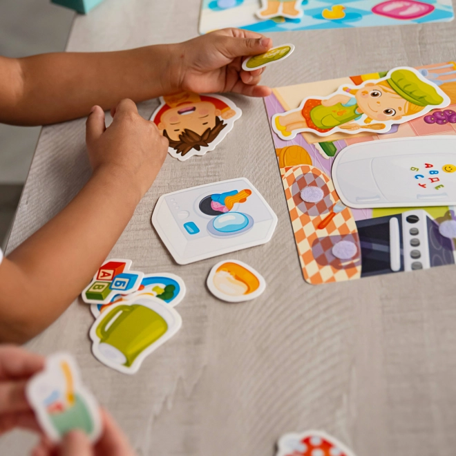 I puzzle con velcro Casa introducono i bambini, in modo giocoso, agli oggetti della vita quotidiana e al loro corretto posizionamento in casa. Grazie alle schede in plastica flessibile e ai pezzi con velcro, la manipolazione è facile e sicura. Il trattamento superficiale speciale è piacevole al tatto e incoraggia il gioco autonomo.