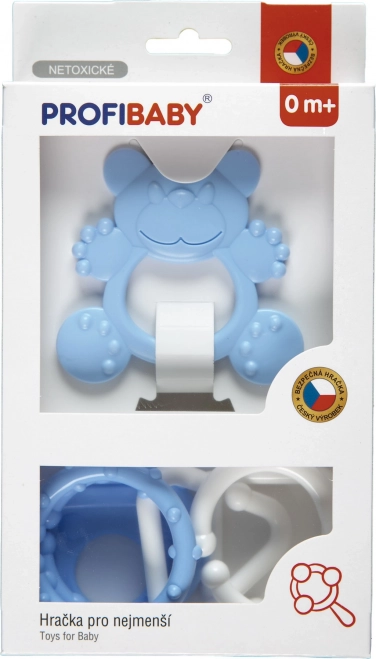 Questo set in tonalità pastello è progettato per offrire ai neonati un sollievo sicuro durante la dentizione e, allo stesso tempo, sviluppare i loro sensi. Materiali leggeri e forme levigate sono delicati per bocca e gengive, facili da afferrare e favoriscono la motricità fine.