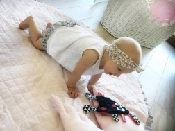Il morbido tessuto minky e le superfici differenziate supportano le sensazioni tattili. La struttura leggera e gli elementi sporgenti sviluppano la presa e la motricità fine.