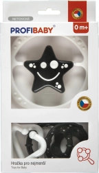Pratico set di sonagli in bianco e nero per neonati che combina una catena per passeggino e un sonaglio separato a forma di stellina o fiorellino. I colori a contrasto supportano la percezione visiva, mentre il suono delicato e le forme sicure sviluppano la motricità e i sensi del bambino. I sonagli sono progettati per una presa confortevole e rispettano rigorose norme igieniche. Senza spigoli vivi, senza piccole parti rimovibili e ideale per il gioco quotidiano a casa e in viaggio.