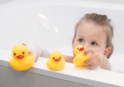 I giocattoli sono leggeri, resistenti e facili da lavare. Le barchette possono essere inserite una nell’altra per risparmiare spazio e le paperelle sono abbastanza vivaci da essere ben visibili nell’acqua. La certificazione CE conferma il rispetto dei requisiti di sicurezza europei.