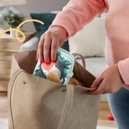 Leggero, morbido e facile da riporre. Si infila in borsa e, grazie all’asola, si aggancia al passeggino – gioco sensoriale ovunque.