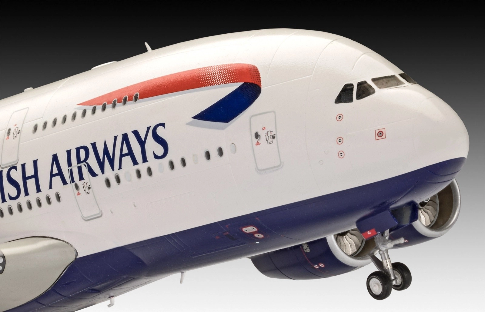 Modello in plastica del velivolo di linea a lungo raggio, a fusoliera larga e a due ponti AIRBUS A380-800 nella classica livrea BRITISH AIRWAYS, perfetto per ogni appassionato di aviazione civile. I pezzi sono accuratamente stampati e pronti per un montaggio pulito; il risultato è un modello impressionante del leggendario aereo di linea.