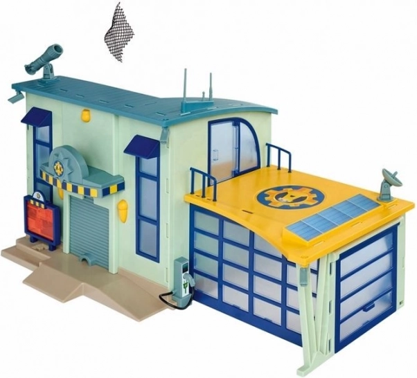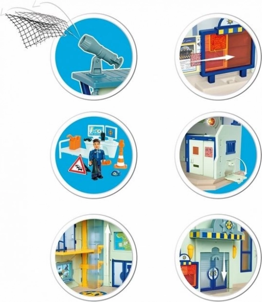 Il rifugio della polizia dall’ultima versione del gioco Fireman Sam garantisce tantissime possibilità di gioco: c’è un parcheggio per il jeep, una prigione con parete sfondabile, un ascensore, un allarme, una piattaforma di atterraggio per elicottero; le stanze al piano terra e al piano superiore sono arredate.