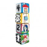 Scopri un set di 4 cubi morbidi e colorati in tessuto per neonati e bambini piccoli, che sviluppano la percezione sensoriale, la motricità fine e l’apprendimento di numeri e forme. Ogni cubo presenta texture diverse, un specchietto sicuro e illustrazioni di animaletti, numeri e forme. I cubi possono essere impilati in una piramide stabile e combinati in serie illustrate per un apprendimento divertente.