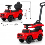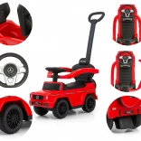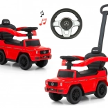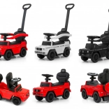 Il cavalcabile MERCEDES G350d con licenza Mercedes è un prodotto realizzato con grande attenzione ai minimi dettagli e alla qualità dei materiali utilizzati. Grazie al carattere multifunzionale del giocattolo, il tuo bambino non si annoierà rapidamente e, giocando, svilupperà le sue abilità manuali e le capacità motorie. Un ulteriore vantaggio è il volante interattivo, che rende il gioco ancora più divertente. Il prodotto dispone di ruote sterzanti con volante o maniglia, che garantiscono una guida confortevole durante le passeggiate. È molto facile da montare e smontare, è stabile e sicuro. I singoli elementi (barre di protezione e maniglia) possono essere rimossi, così il veicolo “cresce” con il tuo bambino.
