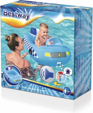 La barchetta è ideale per avvicinare i bambini all’acqua: garantisce sostegno e sicurezza e allo stesso tempo stimola la fantasia ludica con dettagli come “ruote”, griglia e elementi della polizia. Ottima scelta per piscina e acque calme.