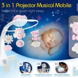 Animaletti rotanti, illuminazione piacevole e musica favoriscono il rilassamento del bebè e lo sviluppo dei suoi sensi nei primi mesi.