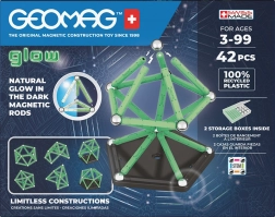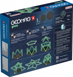 Scopri la magia del set magnetico GEOMAG Glow con 42 pezzi, che al buio fosforescono. Ricarica alla luce, spegni e guarda le tue creazioni brillare! Il set stimola creatività, motricità fine e visione spaziale ed è realizzato con precisione svizzera e massima sicurezza.