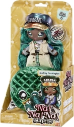 Scoprite la magia della bambola Na! Na! Na! Surprise. Con questa morbida bambola alla moda e una borsa alla moda con zip, realizzata con tessuto metallico splendente, farete un'ottima impressione a prima vista. La bambola ha occhi magnificamente dettagliati e ciglia lunghe che aggiungono un fascino personale. La borsa è ideale per nascondere la bambola o vari piccoli oggetti.