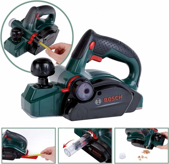 La pialla imita un vero utensile BOSCH: con effetti luminosi e sonori e un rullino rotante sicuro per un'esperienza di gioco credibile.