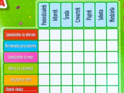 Ogni sera, l’adulto registra il comportamento del bambino nei campi della tabella in base ai compiti concordati in anticipo. Il bambino e l’adulto stabiliscono prima i simboli da usare per i comportamenti positivi e negativi.