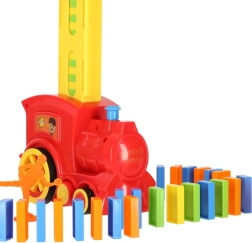 Questa locomotiva colorata con dispenser di tessere dispone autonomamente il domino a distanze fisse e ogni posizionamento è segnalato da un suono. I bambini possono scegliere facilmente la direzione di marcia ruotando il camino e creare così percorsi e disegni variati. Colori vivaci e un design accattivante attirano l’attenzione e invogliano a giocare a lungo.