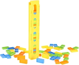 La confezione include: locomotiva colorata, dispenser di tessere, 80 pezzi di domino e un cactus in plastica come ostacolo.