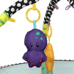 - Giochini e palline: Il tappeto include giochi morbidi e colorati come un pesciolino, un polpo, una stella e una scatolina con specchietto. Inoltre, 30 palline di plastica in colori vivaci stimolano i sensi del bambino.