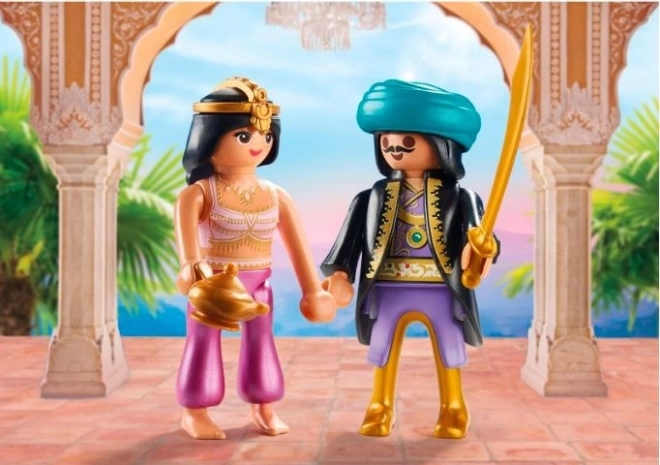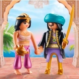 Accogli gli ospiti con la coppia reale stilosa d'Oriente. La regina e il re sono vestiti con abiti stravaganti, pronti per qualsiasi evento grandioso.