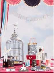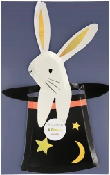 Scoprite gli incantevoli piatti di carta Abracadabra del brand MERI MERI, che trasformeranno la vostra festa in uno show magico. Il motivo del coniglietto nel cappello conquisterà bambini e adulti e si inserirà perfettamente in un allestimento a tema magia o circo. Grazie alla lavorazione accurata e all’aspetto accattivante, i piatti saranno non solo pratici ma anche decorativi.