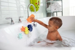 Trasforma il bagnetto in un piccolo laboratorio! I colorati ingranaggi con ventosa si fissano facilmente su superfici lisce della vasca o delle piastrelle. Facendo scorrere l’acqua, iniziano a girare e insieme creano un sistema idrico interattivo che stimola i bambini a scoprire ed esplorare.