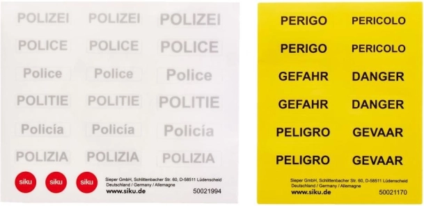 • Le superfici laterali argento-blu con strisce di segnalazione gialle possono essere personalizzate con ulteriori adesivi della polizia.