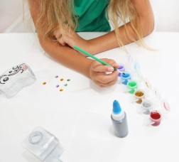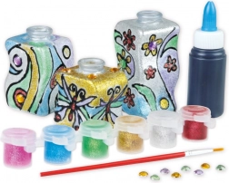 Scopri il divertimento del creare con il set creativo per dipingere sul vetro. Il set include tutto il necessario per realizzare decorazioni originali – 3 vasi, 6 colori scintillanti, un pennello, strass decorativi e pasta modellabile. Supporta creatività, motricità fine e lo sviluppo della fantasia dei bambini.