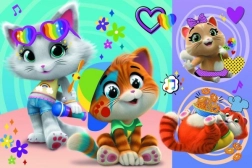 Il maxi puzzle è composto da 24 pezzi robusti e facili da afferrare, adatti alle piccole manine dei bambini. Il tema delle Gatti Felici di 44 CATS incoraggia i bambini a comporre il puzzle e sostiene la loro concentrazione, pazienza e percezione di forme e colori.